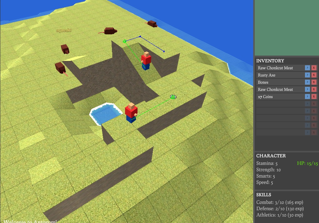 It was a surprisingly productive morning. I got up a few hours early, and instead of going back to sleep I just hopped on the computer and did what I could to bang out this pathfinding stuff. I fixed a frustrating combat positioning bug that was caused by a badly designed equation and some floating point precision errors. After that, I was able to finish up the pathfinding code and spend some time testing it. Seems to be working well, and I want a break for the evening, so here's the update.