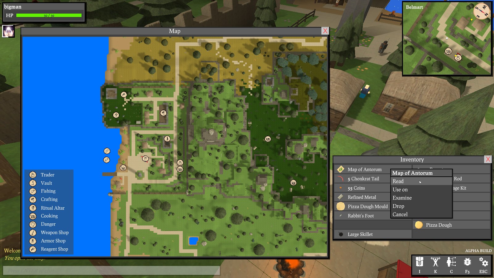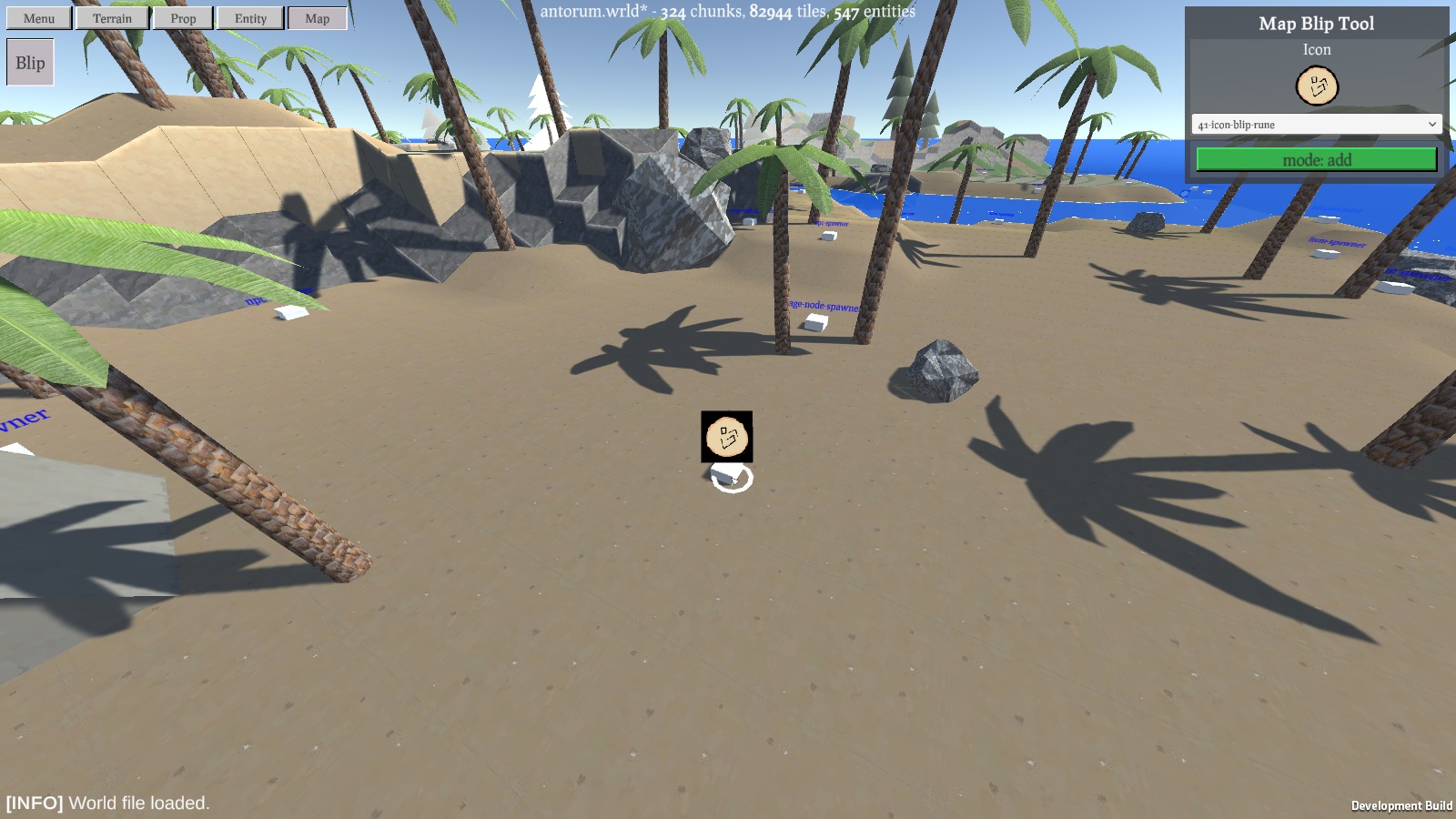 It is pretty basic, and doesn't even show where the player is. You'll need to use your surroundings, compass, and map to get your bearings. As part of this work, I added the ability to render blips for services in the world - so things like the vault, a trader, or even a cooking station should not be as difficult to find. I added a new tool to the editor to help with the placement of such blips.